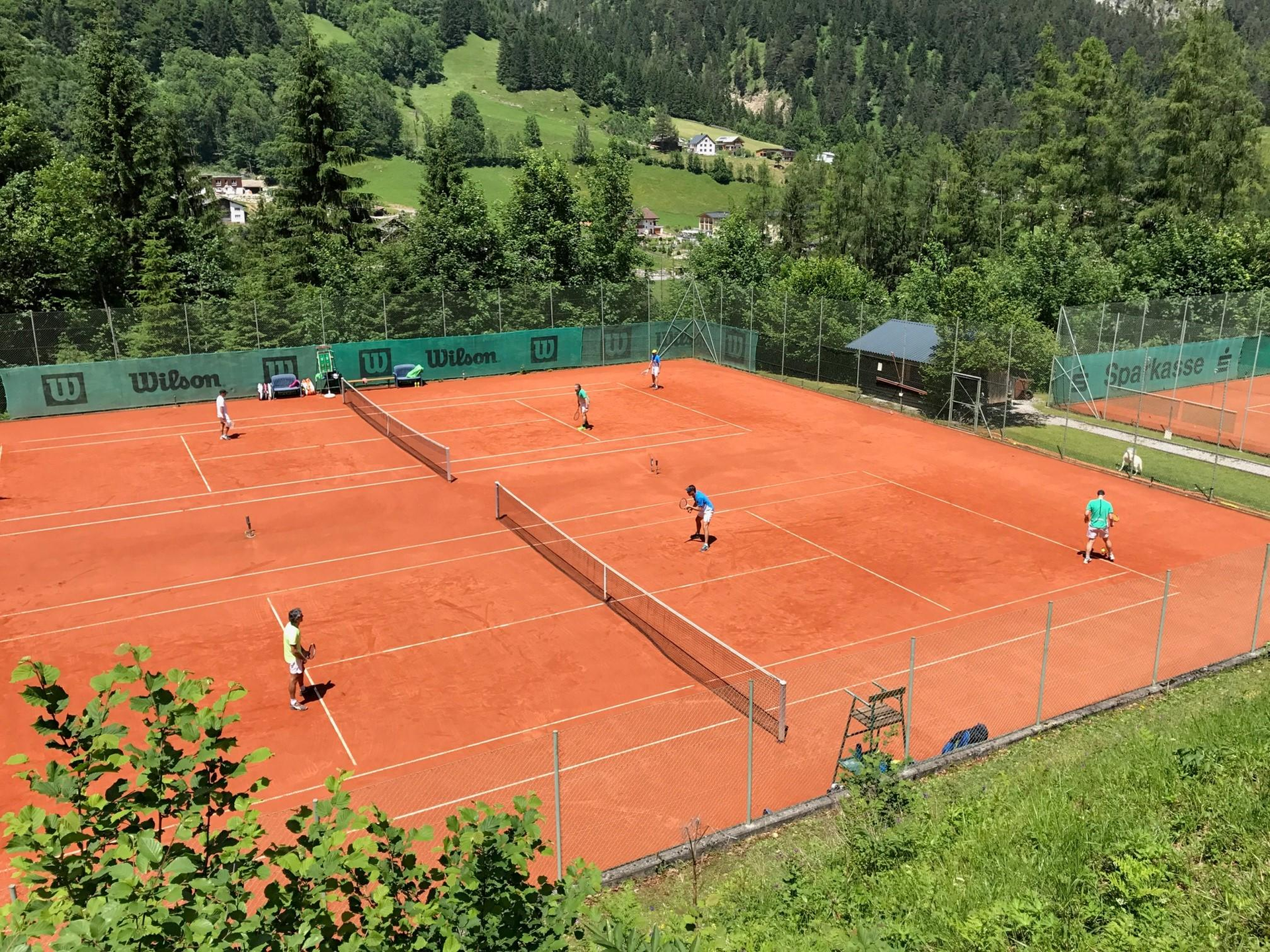 Tennisvergnügen auf den Freiplätzen des Tennisplatzes Älmele in Brand. Umgeben von Bergen, bietet dieser Ort die perfekte Kombination aus sportlicher Aktivität und Naturgenuss.