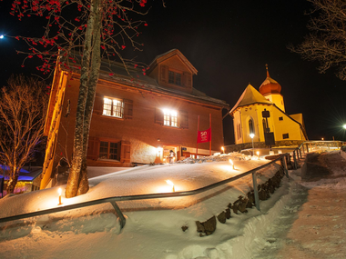 Kulisse Pfarrhof - FIS Skimuseum Damüls