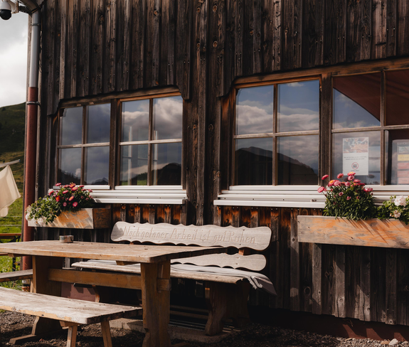 Genießt eine Brettljause in herrlicher Umgebung, wo euch die selbsterzeugten Produkte der Alpe Oberdamüls kaufen können. In unmittelbarer Nähe befindet sich ein Grillplatz und der kleine "Stofelsee", sowie eine Schaukel.