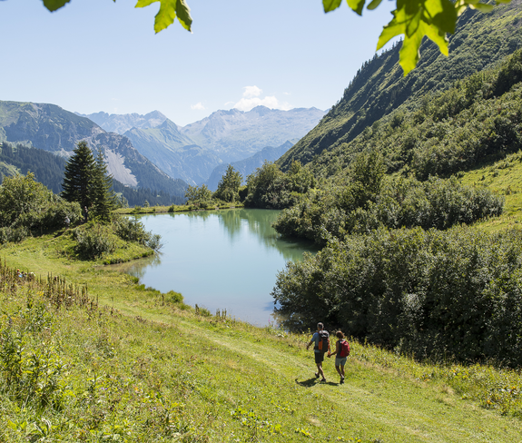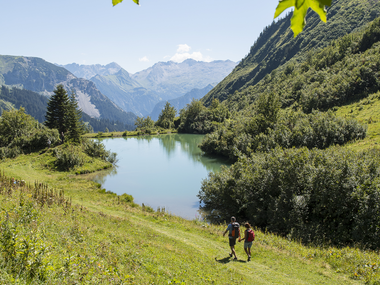 Von der Passhöhe in Faschina erreichst du den Startpunkt des Themenweges entweder zu Fuß oder bequem mit der Stafelalpbahn. Der Startpunkt befindet sich bei der Mittelstation der Bahn. Von dort führt ein abwechslungsreicher Wanderweg zur Franz-Josef-Hütte, bevor es weiter zum idyllischen Stafelalpsee geht. Anschließend folgt der Abstieg über den Güterweg hinunter zur Stafelalpe und zurück zur Passhöhe in Faschina.