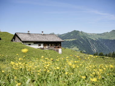 Take the hiking bus from Marul to the Laguzalpe. Then on the alpine path to the Obere Laguzalpe. Now follow the signs Klesenzaalpe via Fürkele to the connecting path Freiburger Hütte - Rote Wand. Rope-secured ascent to Fürkele. Cross to the descent Spitzegga-Klesenzaalpe. Then branch off via the Spitzegga to the Klesenzaalpe. At the Klesenzaalpe you will get an insight into alpine life and can end the first day in a relaxed atmosphere.