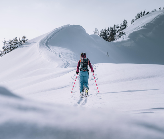 Snow-covered slopes, sparkling snow – or in one word: "nature experience". Away from the hustle and bustle of the ski slopes, you can explore the unspoiled nature in Damüls with a state-certified ski guide. The ascent in the quiet winter landscape is rewarded with a descent through the deep snow, far from the controlled ski runs.